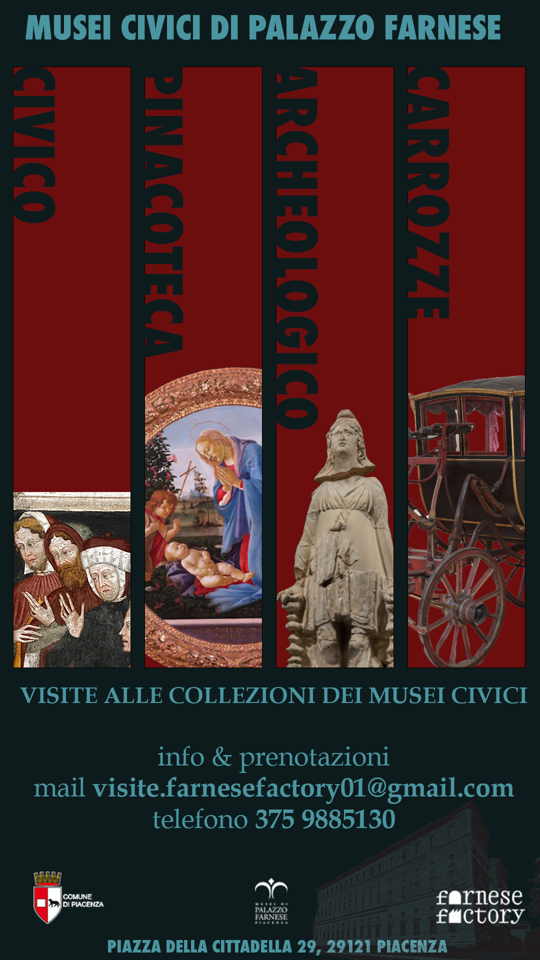 Per info e prenotazioni per entrambi gli eventi: visite.farnesefactory01@gmail.com - 375 9885130